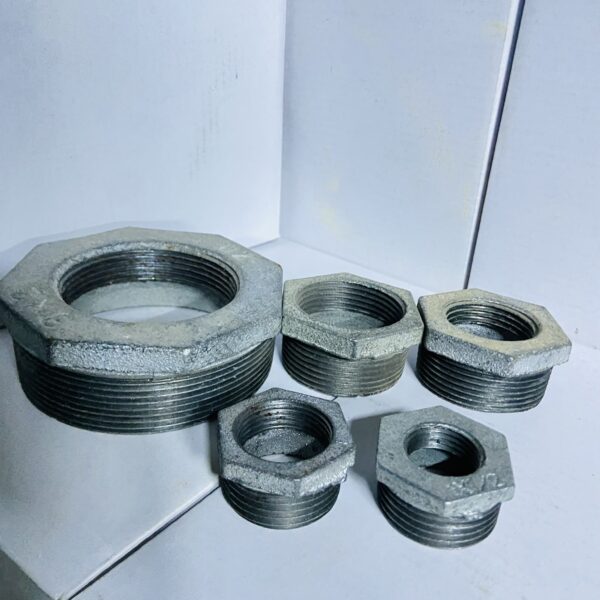 SEO: GI reducing bush, galvanized iron reducer, pipe size reducer, GI fitting, Valijee hardware.