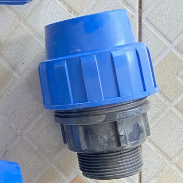 %HDPE Male Adapter – Durable HDPE fitting with a male threaded end, used to connect HDPE pipes to threaded metal pipes or valves, ensuring a secure and leak-proof joint for plumbing, water supply, and irrigation systems.